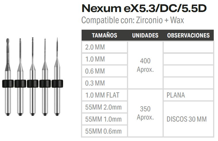 La línea de fresas Nexum ofrece un rendimiento excepcional y una compatibilidad total con los sistemas más utilizados en el mercado. Diseñadas para garantizar precisión, durabilidad y acabados impecables, las Fresas Nexum están disponibles en diferentes configuraciones.